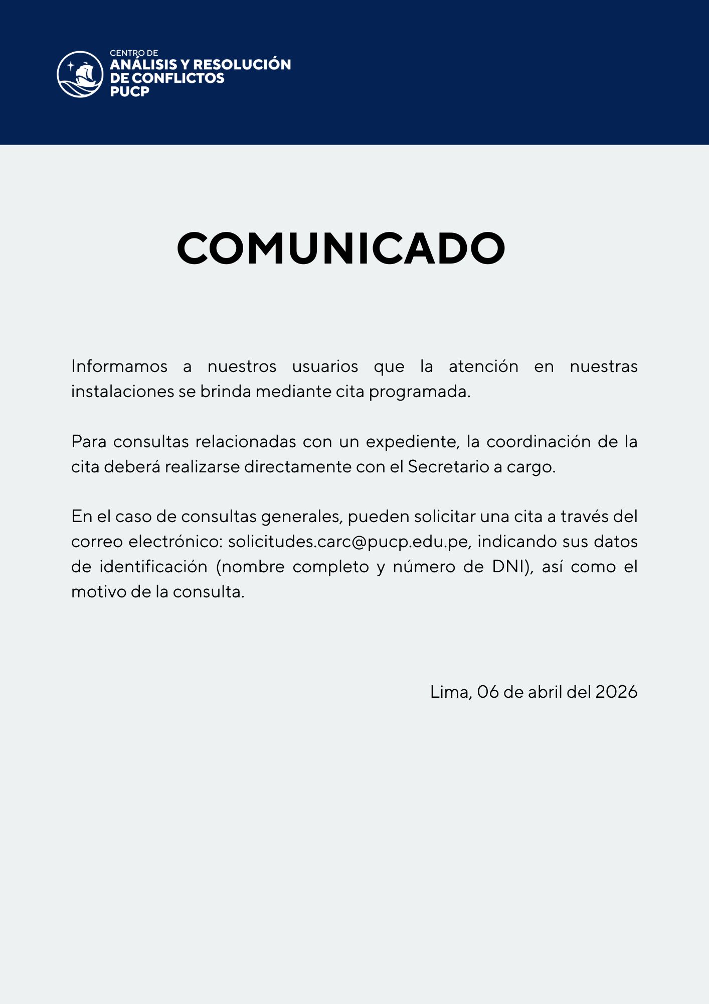 Comunicado sobre la atención en nuestras instalaciones - Centro de Análisis y Resolución de Conflictos PUCP